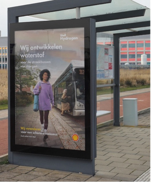 In the "We Are Changing" campaign, Shell showcased various initiatives, including this one about the development of hydrogen for public transport. The ACC found Shell's communication lacking in clarity regarding its sustainability ambitions and execution, emphasizing the importance of transparency in how companies intend to realize their vision for sustainability. Merely urging people to 'search online for Shell for more information is deemed insufficient. Sustainability goals must be more clearly specified in the campaign itself, or, if this is not possible, through direct references to detailed information on a website, for example.